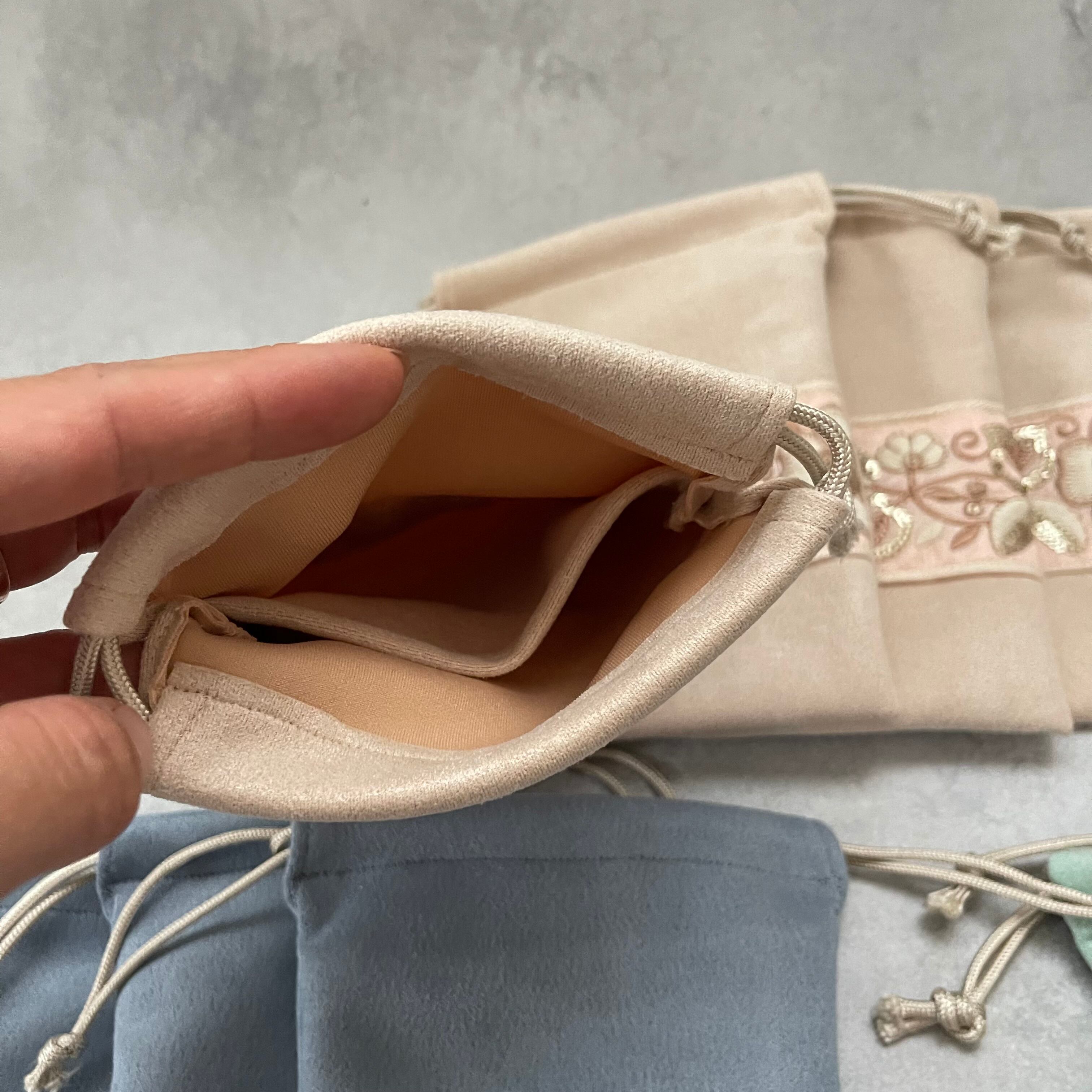 大切なティンシャを優しく包む専用ポーチは
