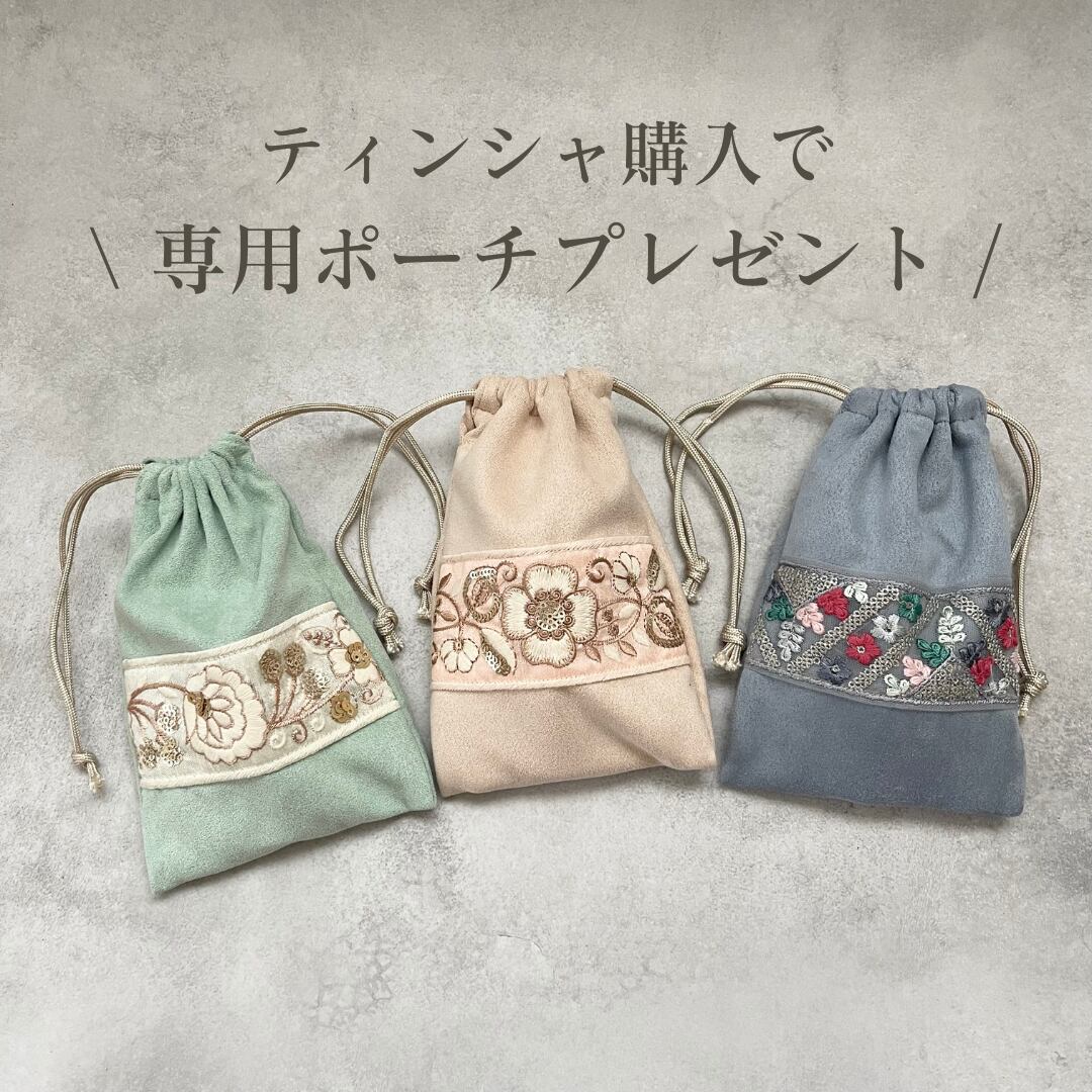 インド刺繍を施した上品なポーチになります。
